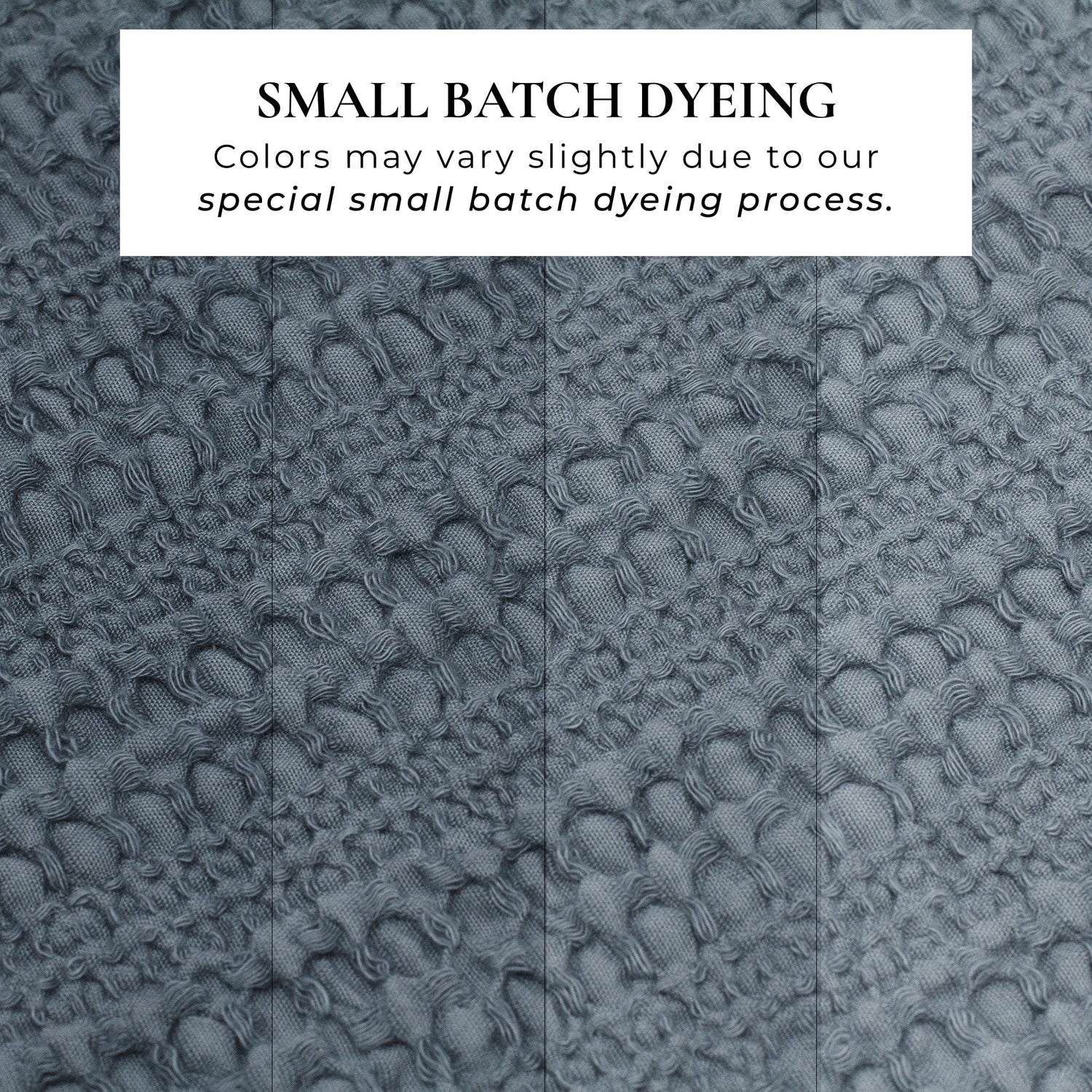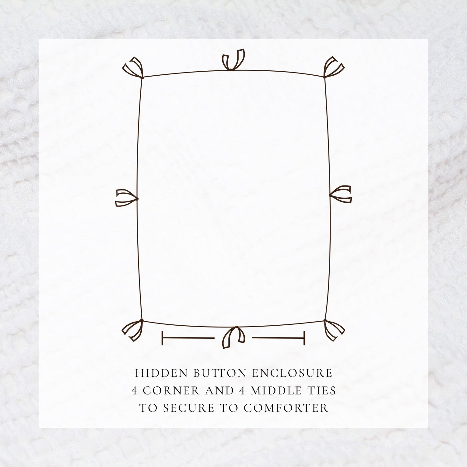 Update your bedroom decor with our textured waffle weave duvet set, crafted with natural cotton, for a refined and stylish look. The set includes a duvet cover with four corner ties, four middle ties, and a hidden button closure to keep everything securely in place throughout the night. This duvet cover is designed to accommodate the natural shrinkage of waffle weave fabric after the first wash, allowing for a perfect fit every time. The smooth cotton percale reverse ensures breathability and comfort. Made sustainably, free from harmful chemicals, and under socially responsible conditions, this duvet set is a decorative choice you can feel good about.