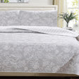 Freshen up your bedroom with the beautiful hues and floral designs of the Emma Collection Printed Quilt Set. This quilt and shams set can add a romantic touch to any décor. Plus, since the quilt is constructed from a mix of cotton and durable man-made fibers, it's super strong and easy to care for.