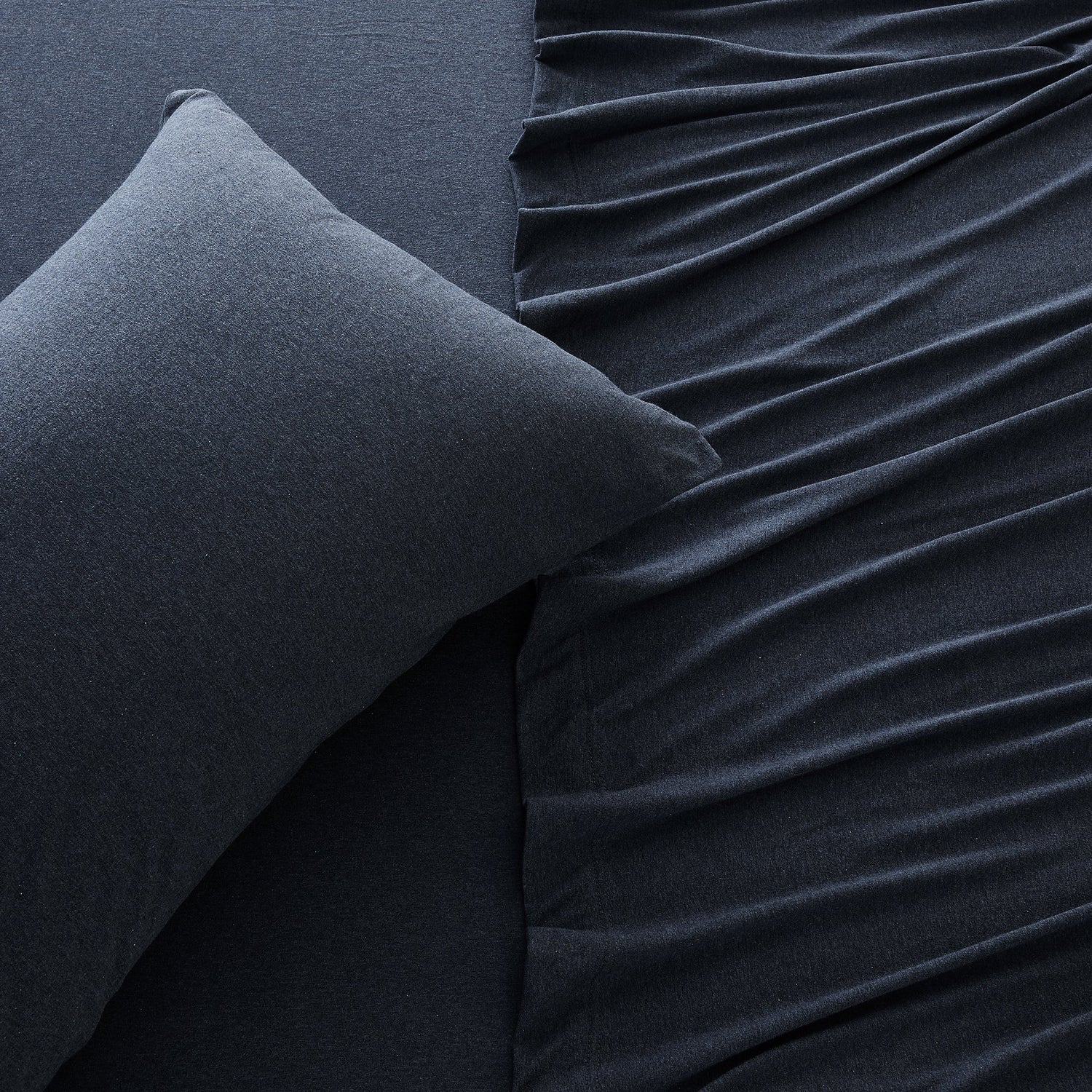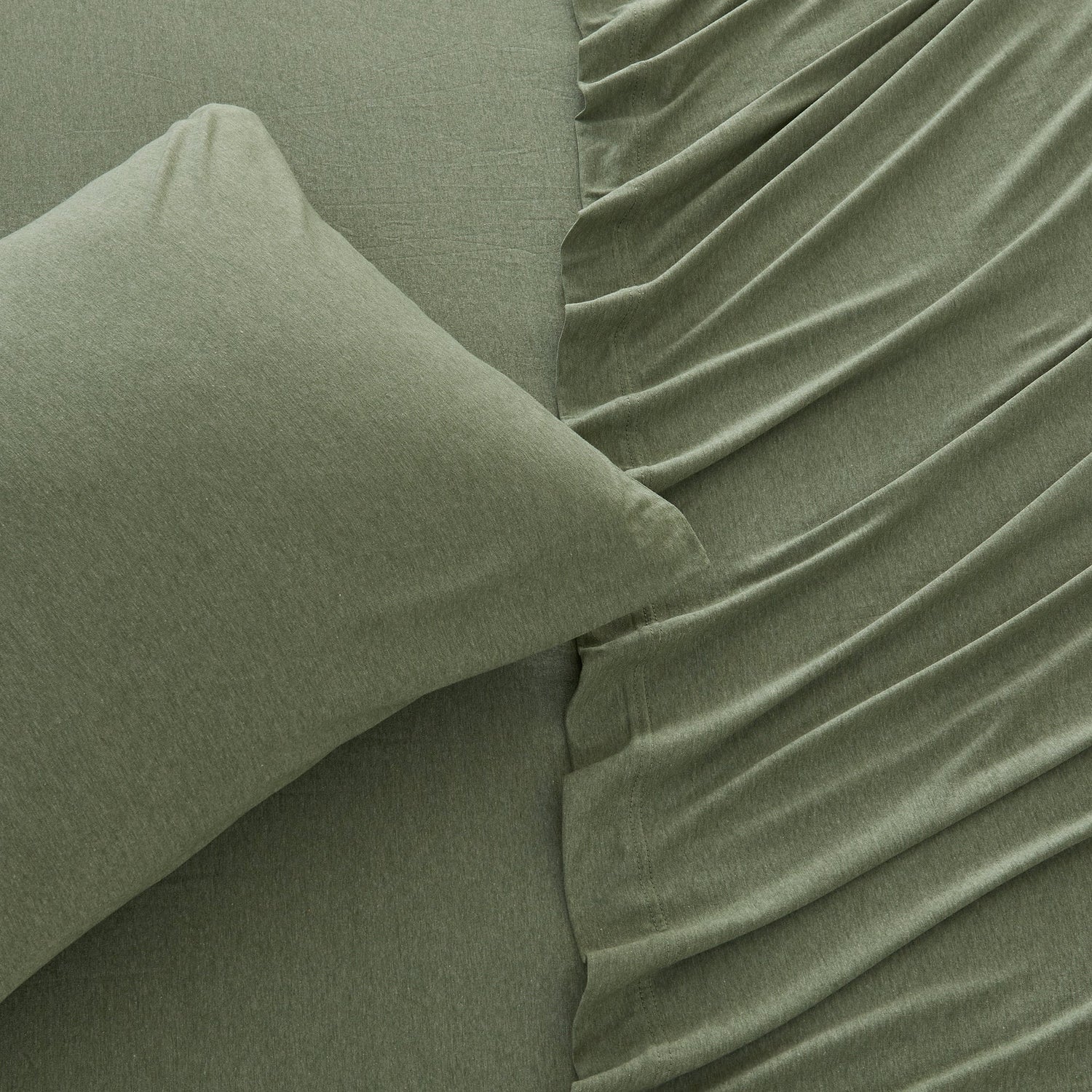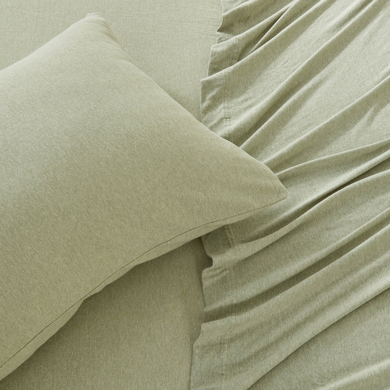 Wrap yourself in comfort with our heathered jersey knit sheets—just like your favorite worn-in T-shirt, but for your bed. Made from a soft and breathable cotton polyester blend, these sheets get even cozier with every wash. They naturally adapt to the seasons, keeping you cool when it’s warm and warm when it’s cool. The heathered melange finish adds a laid-back, effortlessly stylish touch to your space, while the slight stretch ensures a perfect, snug fit on your mattress. Easygoing, ultra-soft, and always inviting—these are the sheets you’ll never want to leave.