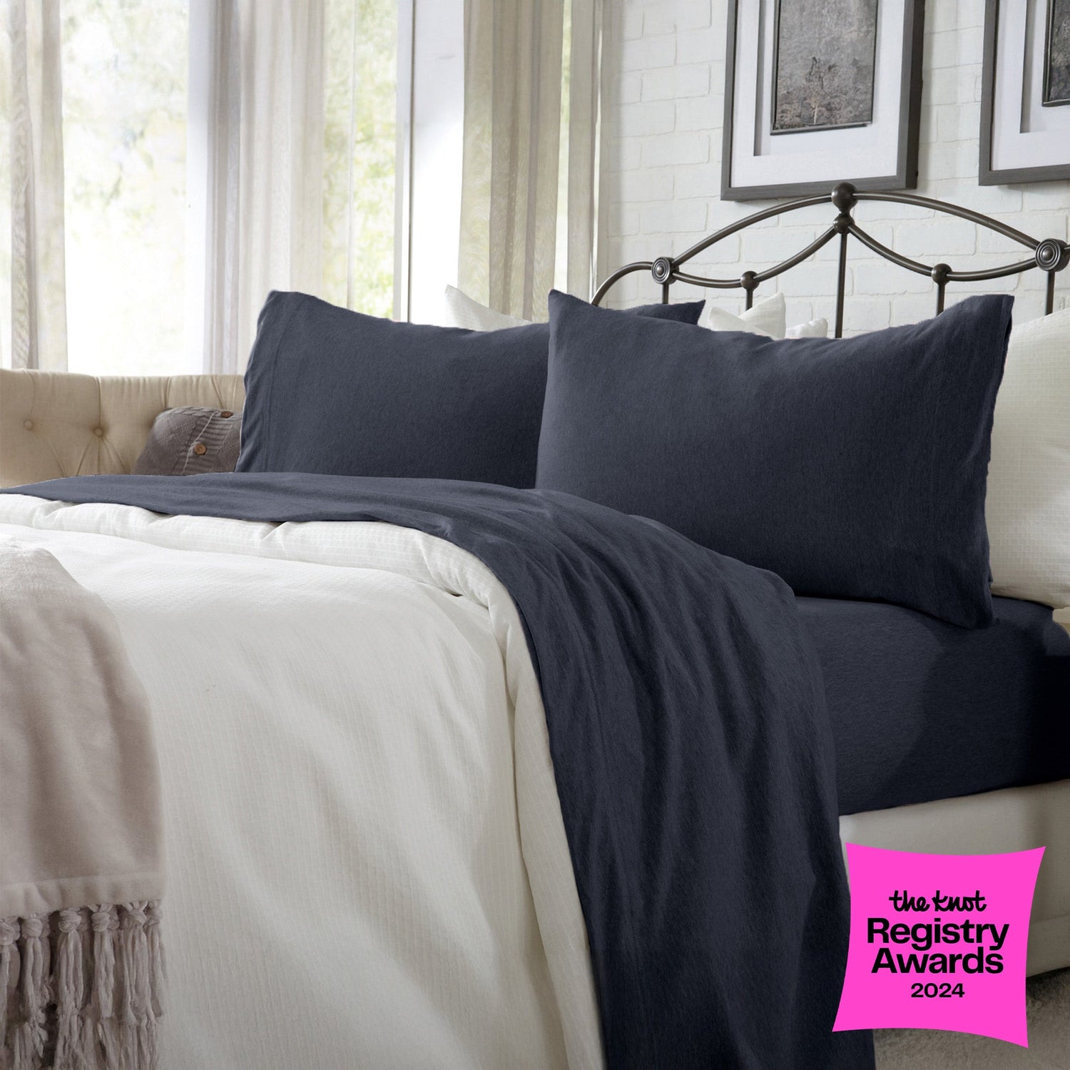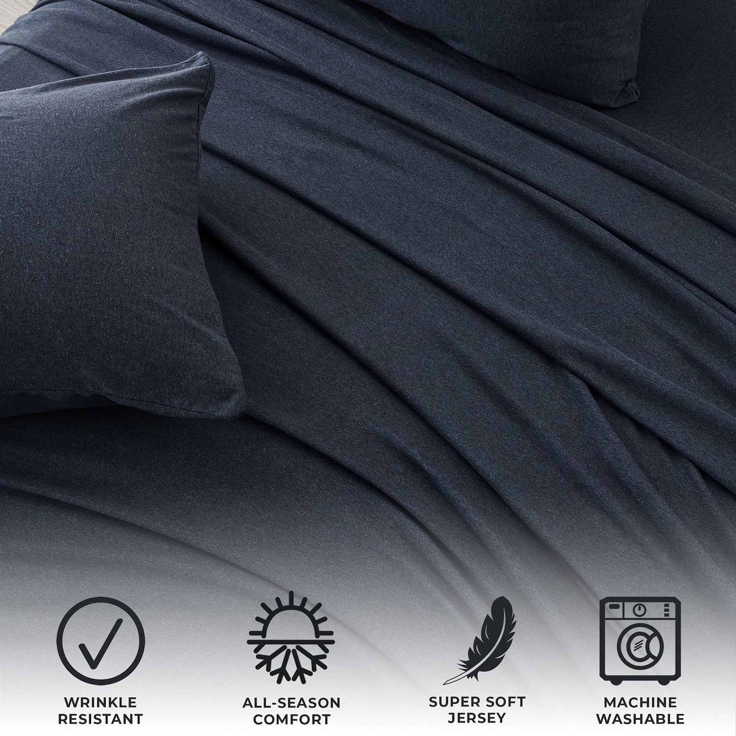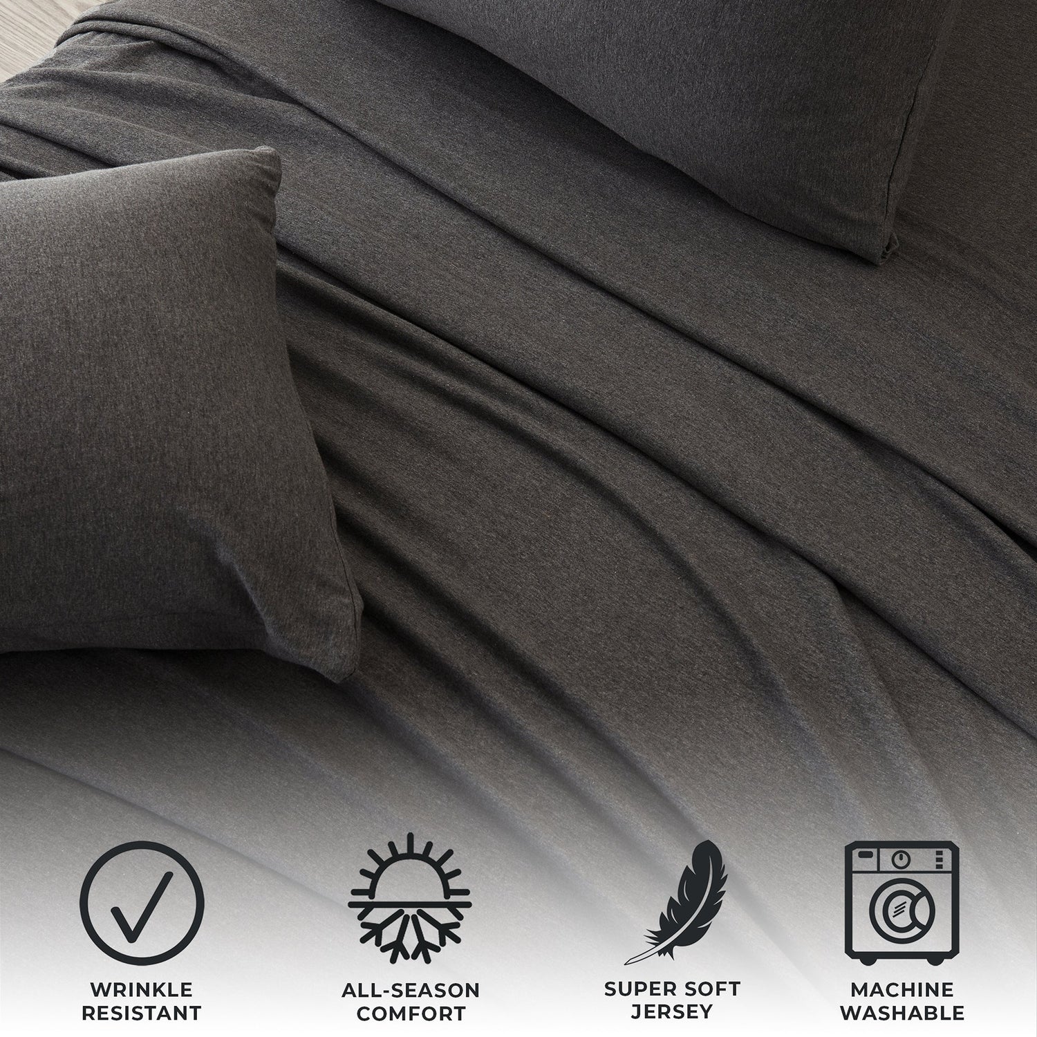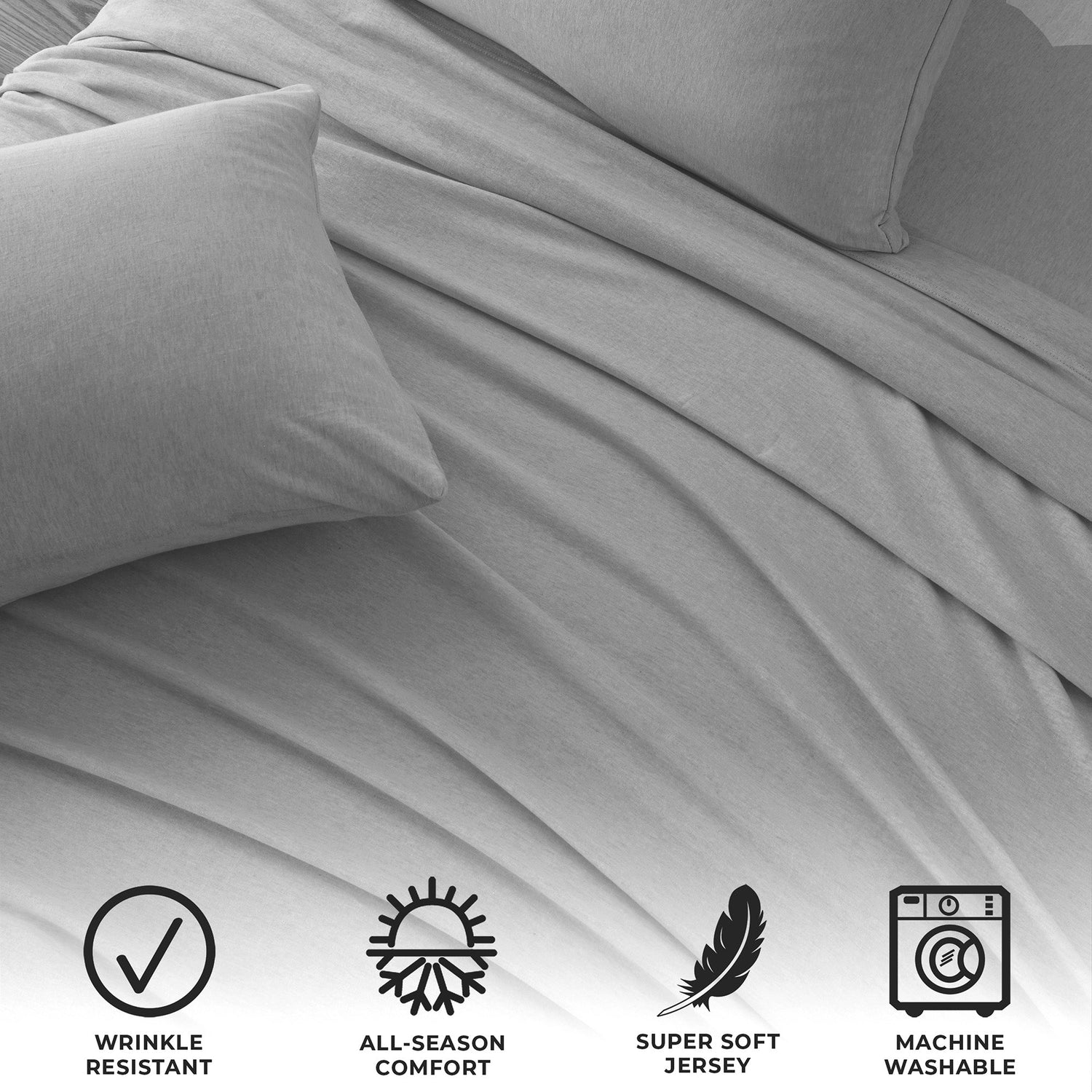 Wrap yourself in comfort with our heathered jersey knit sheets—just like your favorite worn-in T-shirt, but for your bed. Made from a soft and breathable cotton polyester blend, these sheets get even cozier with every wash. They naturally adapt to the seasons, keeping you cool when it’s warm and warm when it’s cool. The heathered melange finish adds a laid-back, effortlessly stylish touch to your space, while the slight stretch ensures a perfect, snug fit on your mattress. Easygoing, ultra-soft, and always inviting—these are the sheets you’ll never want to leave.