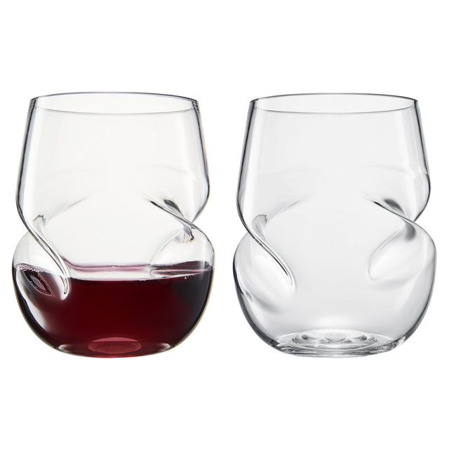 Barcelona Acrylic Stemless Finger-Indent Wine Glassware, Set of 2. 4.06"H X 2.6"dia. 13 ounces.