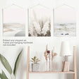 Set of 3 coastal prints, made in beige tones. You can add them to your Boho-inspired interior with the same success as a modern home. We recommend using these prints to decorate your living room or bedroom. This set was designed so that the pieces can be hung together or separately.