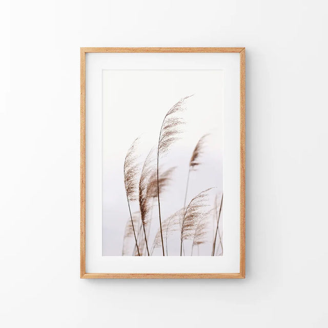 This coastal-inspired wall decor depicts dried grass in a summer field. This modern boho-inspired print is in pastel beige tones and will perfectly complement your home's decor. Try it in thin wood frames! :)