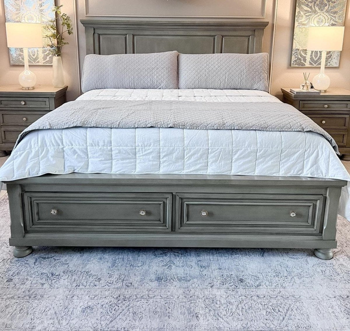 The Belgian Flax Linen Rich Cotton Blend Quilt 3 Piece Set is available in your choice of Full/Queen or King/Cali King sizes. The 3-piece set includes the quilt and two matching pillow shams.