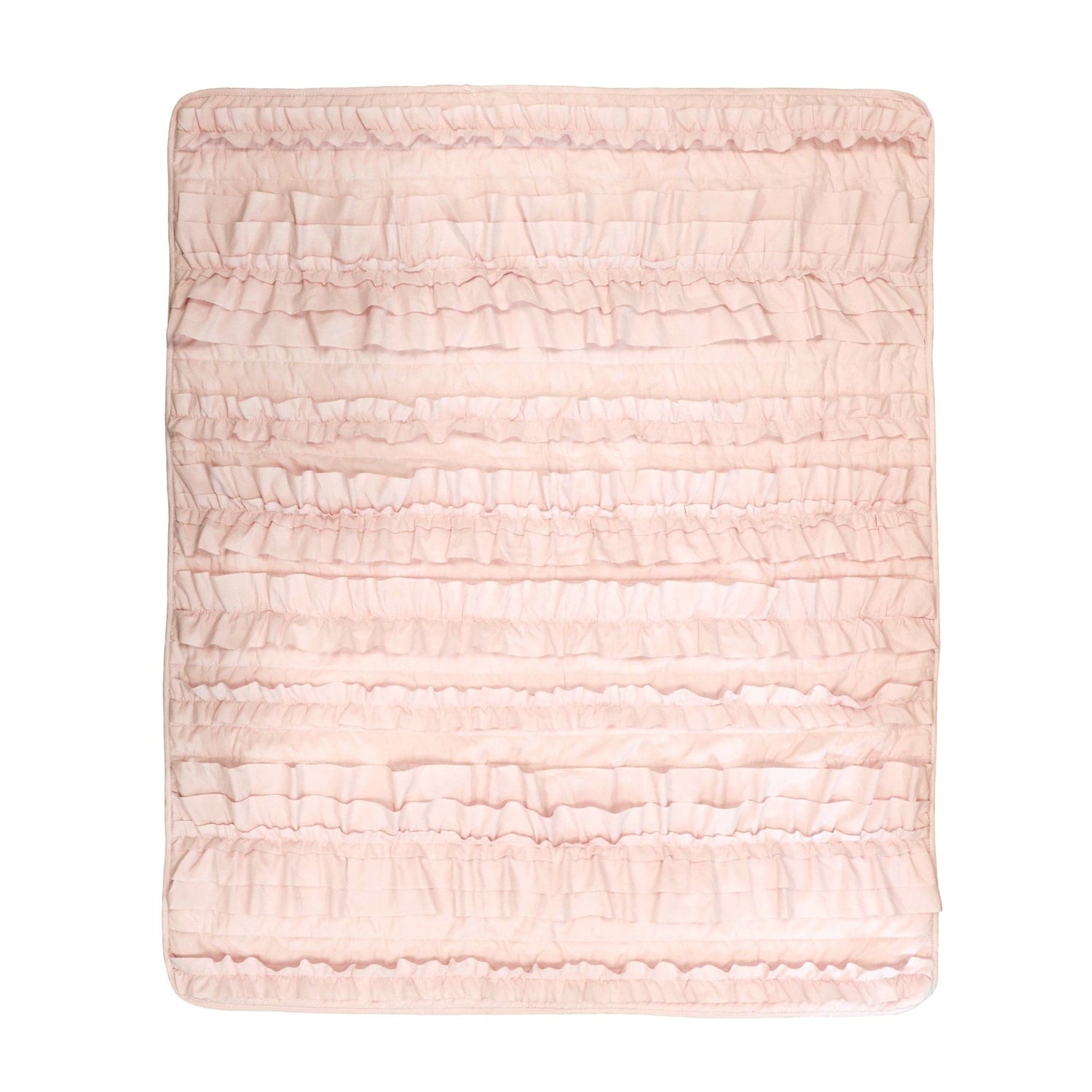 The Belle Throw measures 60 inches high by 50 inches wide. The trendy pink blush color is neutral enough to fit into many decor themes.