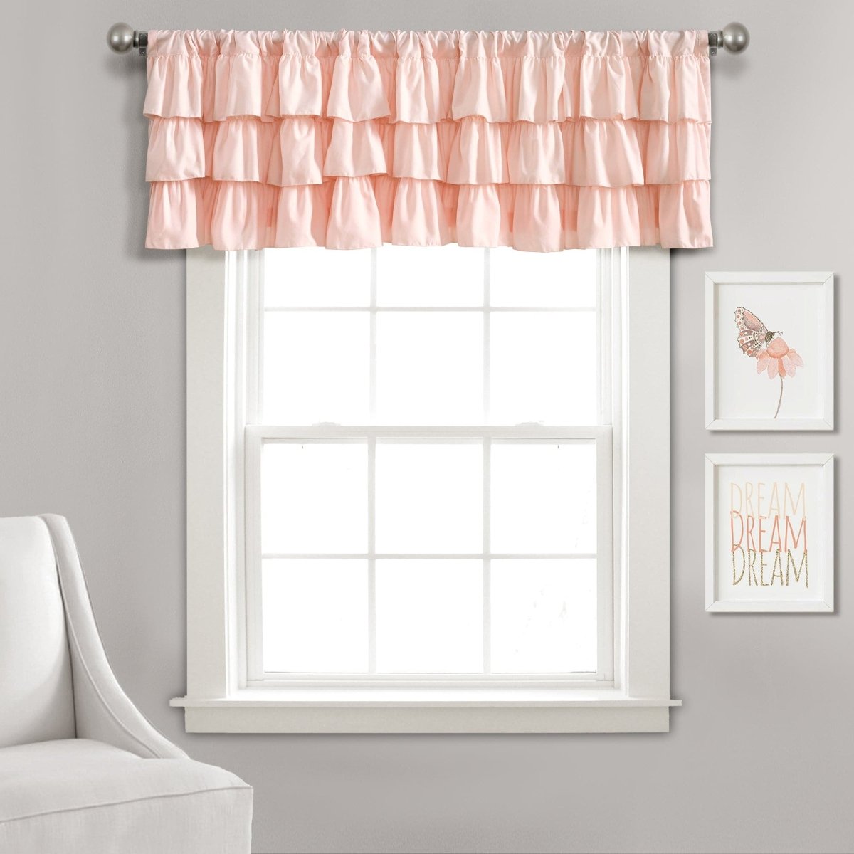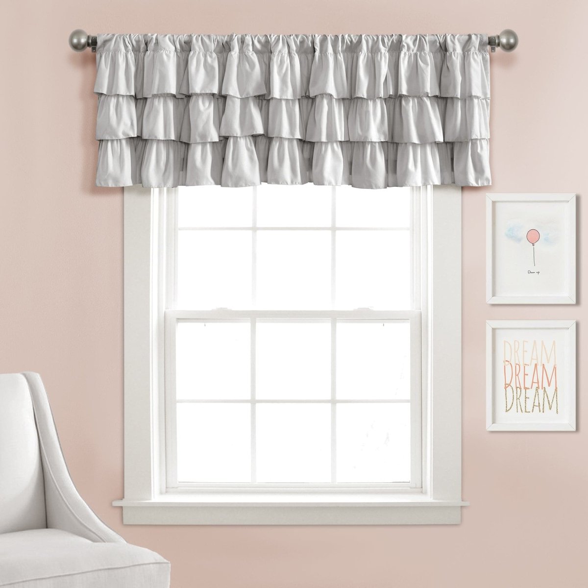 This beautiful Belle Valance is available in Ivory, White, Blush or Gray and measures 18 inches high by 84 inches wide. The ruffles add femininity and texture to any room in the home.