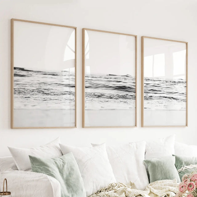 This triptych wall art set in black and white will perfectly complement your room and become an integral part of it. These enchanting waves will bring calm and silence to your space. It looks awesome in a white frame with a mat.