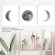 We designed this charming set of moon phase wall art to create the coziest atmosphere for your bedroom. These prints are in black and white and look very stylish. The best looks are black or white frames with a mat.