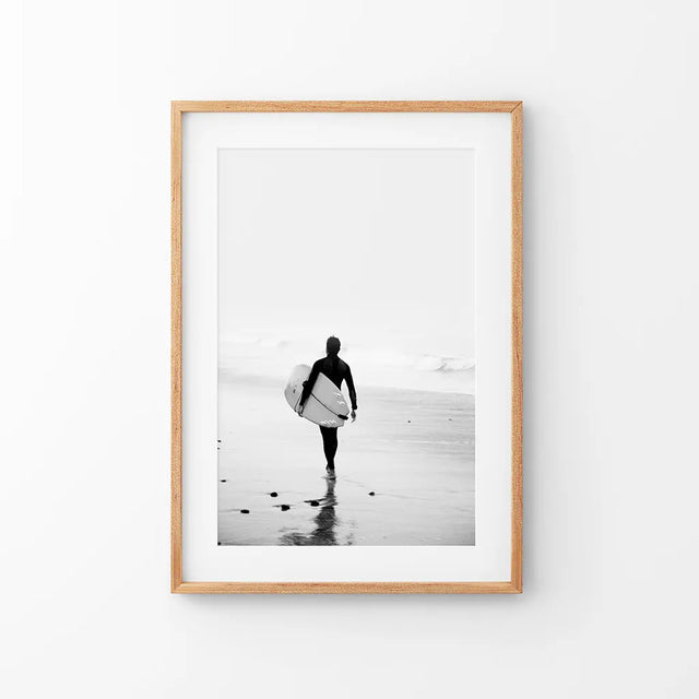 It depicts one of the most popular summer activities of coastal life: surfing. This photo evokes a sense of calm and relaxation, it will perfectly complement your bedroom with its black and white style. Try it in white frames with mat, it looks so nice! :)