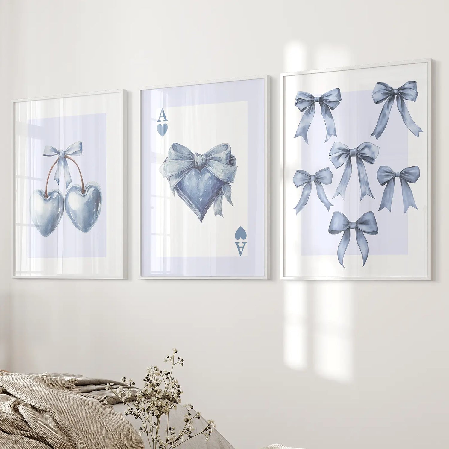 Blue Coquette Bows Wall Art Set of 3 Prints Decor