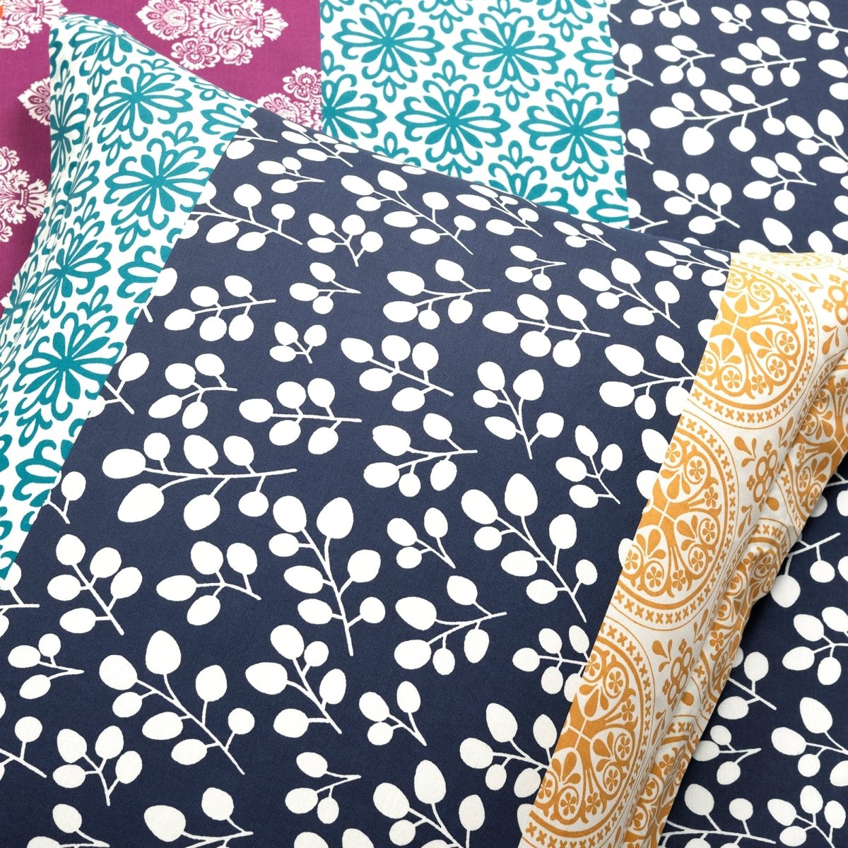 Note: The fabric on this Bohemian Stripe Cotton Reversible Duvet Cover Set is cut randomly after printing, so the order of stripes from top to bottom on the shams and the front of the duvet cover may be different than what is pictured. We cannot guarantee one sham design over another.