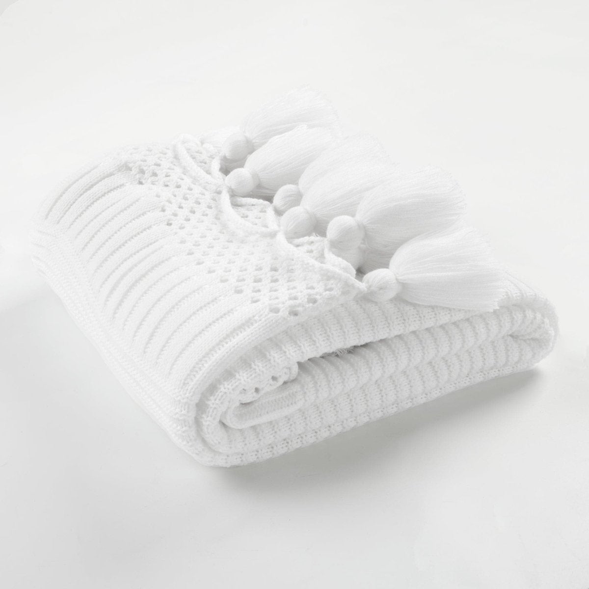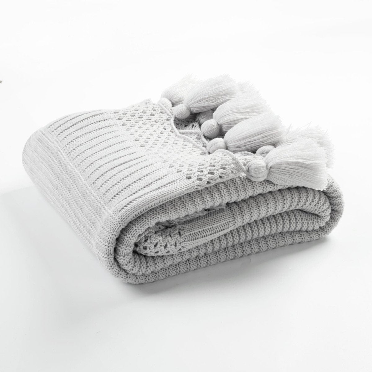 Everyone needs a light and cozy throw in their home to add style and function to the bedroom or living room. Imagine the perfect relaxing night at home – it isn’t complete without a soft throw! Crafted to create cozy vibes, this Boho Knitted Tassel Throw showcases its various knitting techniques as layers of dimension.