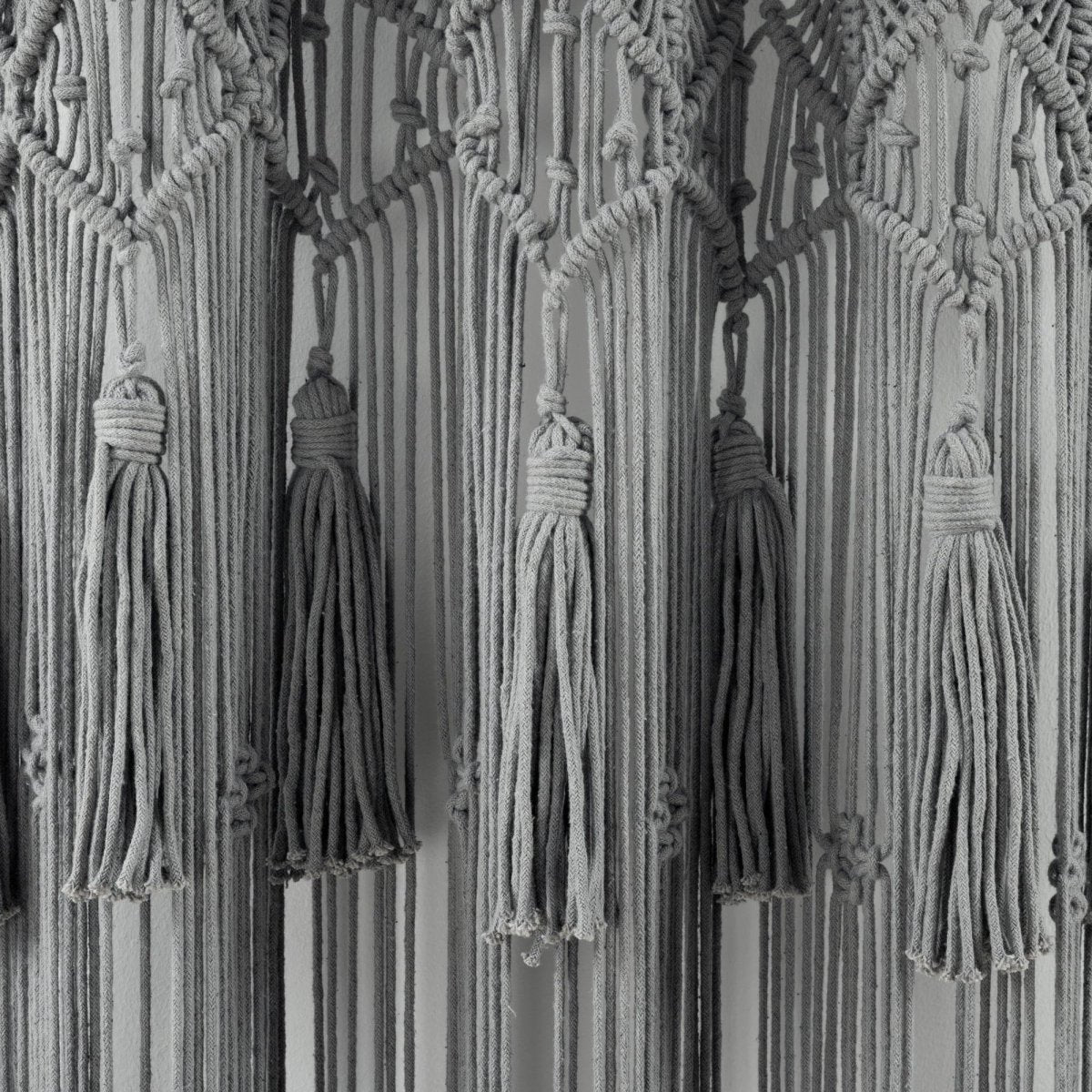 Create a textured boho look in multiple rooms of your home with the versatile Lush Decor Boho Macrame Tassel Cotton Window Curtain Panel. A macrame curtain featuring a beautiful hand-knotted pattern, detailed with large hanging tassels, will easily add visual interest to your space. Use this as a window curtain, doorway curtain, room divider, photo backdrop, or wall art. Macrame decor brings a relaxing, bohemian vibe into your home. Due to the open, woven design, this window curtain has a sheer opacity, letting in plenty of light. This handcrafted boho curtain is woven with 100% cotton rope. Seven tassels hang across the panel, each flowing approximately seven inches down. This curtain for windows measures 40 inches wide by 84 inches long, and is sold as a single window panel. This window panel offers seamless installation with its 3" rod pocket, easily slide it onto your curtain rod or by using clip rings (not included). Our Boho Macrame Collection is crafted and hand woven by an independent women's cooperative located in a small village in Parajat, India. This curtain is made with love and your purchase helps to support and empower these women makers and their entire village. To care for this cotton curtain we recommend spot cleaning and hanging to dry.