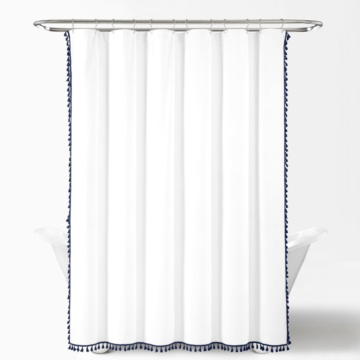 Be inspired by the texture and movement of the hanging tassels to bring this fun detailing into the rest of your bathroom styling. This Boho Melora Tassel Yarn Dyed Recycled Cotton Shower Curtain measures 72 inches on each side and should fit most standard bathtubs.