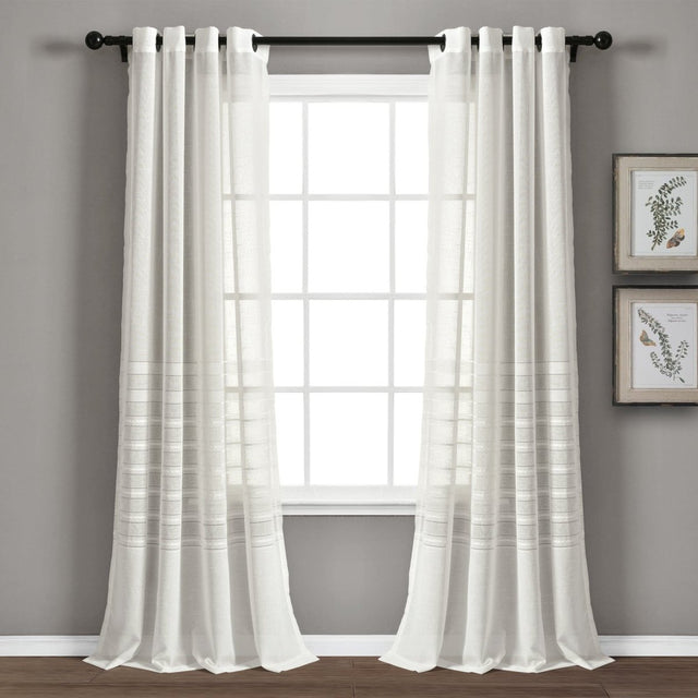 This Bridie Grommet Sheer Window Curtain Panel Set will make a subtle statement in your home. Add them to your home office, living room, dining room, or master bedroom. Neutral hues give them a stylish look that will match easily with the decor already in your home.