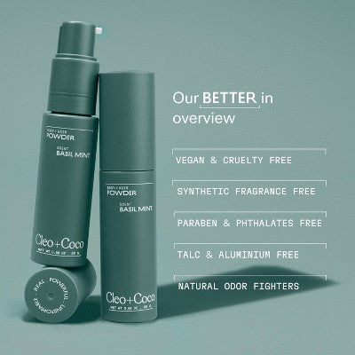 Our natural, high-performance hair and body powders deliver multi-use freshness with plant-based ingredients like arrowroot powder and activated charcoal—no aluminum, talc, benzene, or synthetic fragrances.