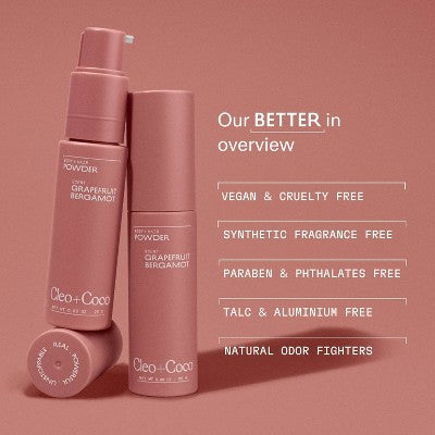 Our natural, high-performance hair and body powders deliver multi-use freshness with plant-based ingredients like arrowroot powder and activated charcoal—no aluminum, talc, benzene, or synthetic fragrances.