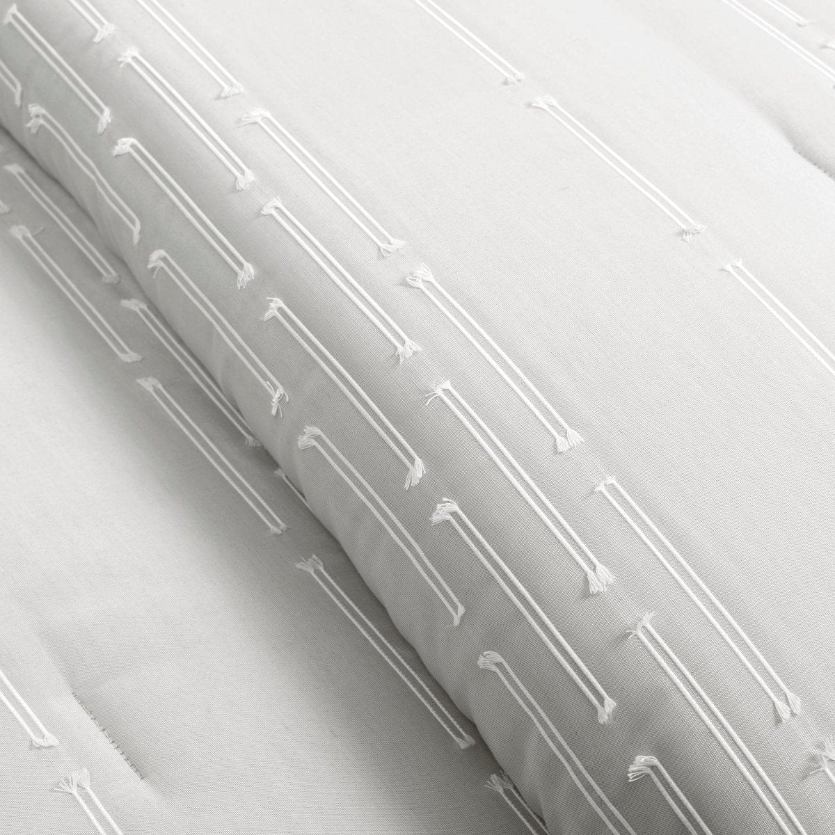 Crafted from premium materials, it offers both style and comfort, with a generously filled interior ensuring cozy nights throughout the year. Change up your bedroom decor with this reversible comforter set, simply flip the Clipped Stripe Jacquard 3 Piece Comforter Set over to reveal a non-textured solid colored design for a more simple, classic bedding look.