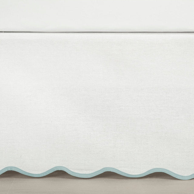 Crafted with high-quality materials, this Coastal Chic Scallop Edge Bed Skirt conceals under-bed storage while adding a clean, finished look to your coastal themed bedroom. Available in white with an edge binding in soothing seaside colors, it complements your decor effortlessly.
