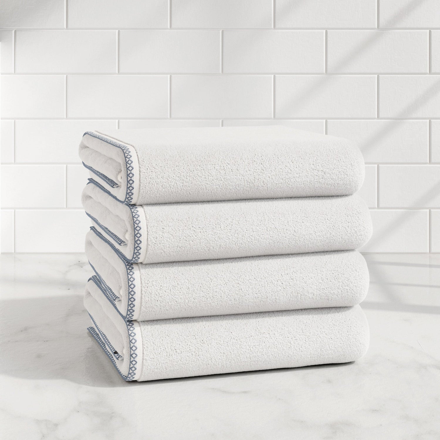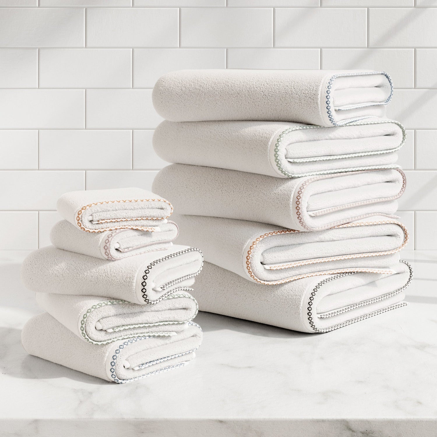 Wrap yourself in effortless comfort with our lightweight, ultra-soft cotton towels. Made from premium zero-twist, combed cotton, they offer a plush yet breathable feel that’s both durable and gentle on your skin. The woven, top-stitched border adds a subtle textured detail, bringing a relaxed, boho-inspired touch to your space. Designed for both function and style, these towels are highly absorbent, quick-drying, and perfect for everyday use. Thoughtfully made for modern living, they stay fresh, dry fast, and bring a laid-back elegance to your bathroom.