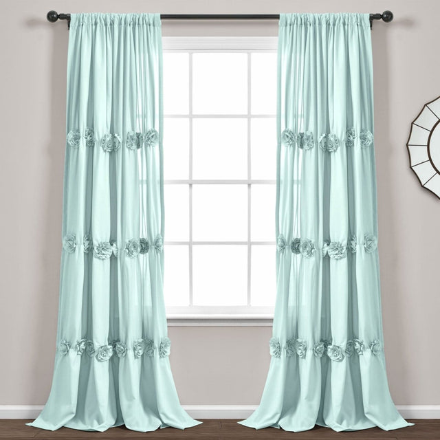 Give your windows a romantic, shabby chic look with this Darla Window Curtain featuring rows of hand crafted flower embellishments. These curtains will let in plenty of natural light while providing ample privacy from neighbors.