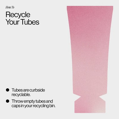 Tube made with 50% recycled materials and are curbside recyclable. Throw empty tubes and caps in your recycling bin.