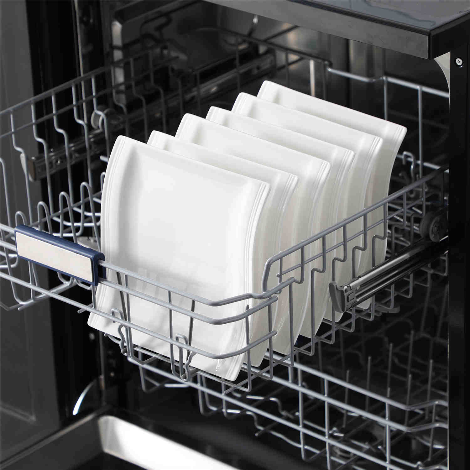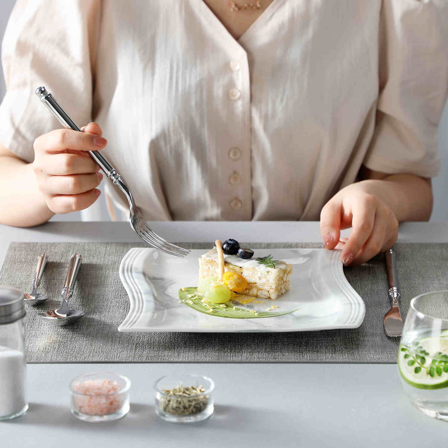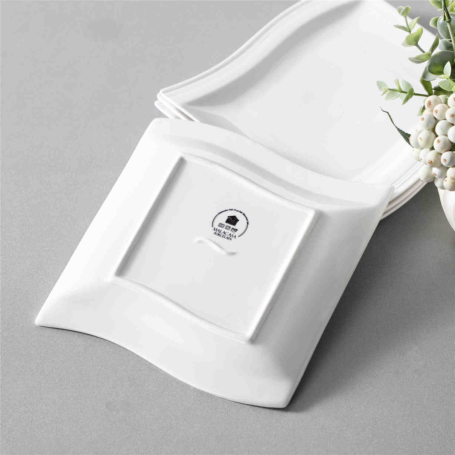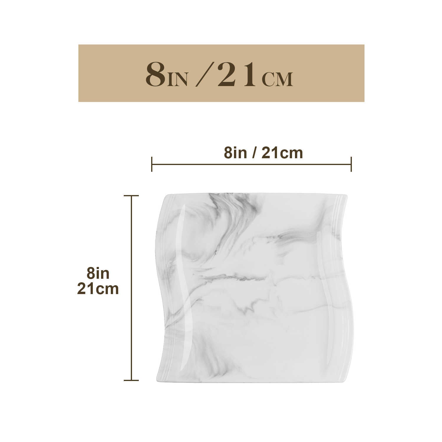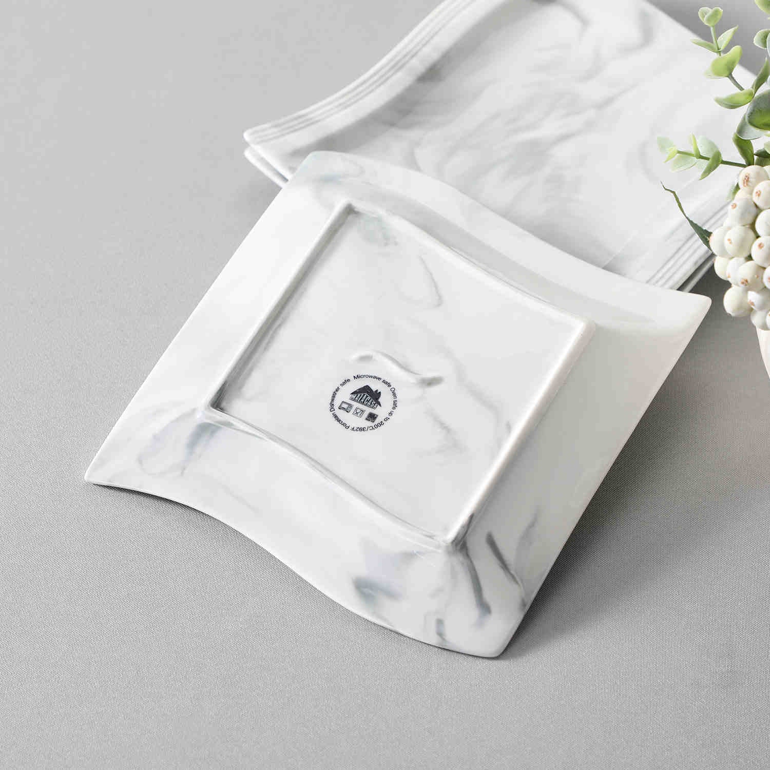 - Fine porcelain wavy-shaped square dessert plates, set of 6, ivory white/marble grey