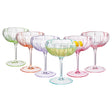 Introducing the Bright Colored Flower Coupes, a set of six exquisite glassware pieces that combine elegance with a unique touch of color. Standing at 5.1 inches tall with a diameter of 3.9 inches, these coupes offer a capacity of 7 ounces, allowing you to enjoy your favorite martinis or cocktails in style.
