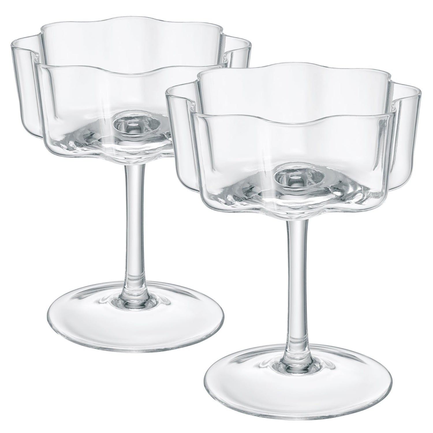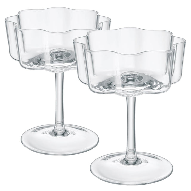 Perfect for your next brunch or dinner party, this glassware set features a gorgeous flower design that perfectly complements any event. Each glass measures 5" in height, 4" in diameter, and has a capacity of 7 ounces. These elegant and colorful champagne coupes are sure to be the perfect accessory to your next birthday celebration, engagement party and more. The set includes two champagne glass coupes that will provide the right amount of character and elegance to any drink!