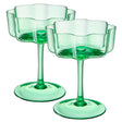 Perfect for your next brunch or dinner party, this glassware set features a gorgeous green flower design that perfectly complements any event. Each glass measures 5" in height, 4" in diameter, and has a capacity of 7 ounces. These elegant and colorful champagne coupes are sure to be the perfect accessory to your next birthday celebration, engagement party and more. The set includes four champagne glass coupes that will provide the right amount of character and elegance to any drink!