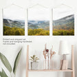 Photo triptych green forest on a background of mountains. It will give your room a great atmosphere. You will feel the incredible freshness of the coniferous forest and mountain air without leaving your home. We recommend to hang this wall art in the living room or bedroom in a large size.