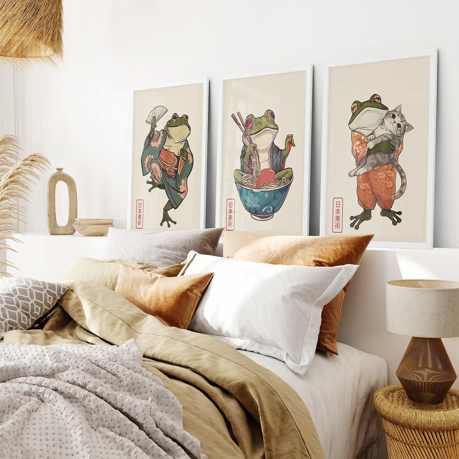 Funny Frog and Cat. Japanese Art. Matsumoto Hoji Poster
