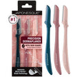 Bye Bye Peach Fuzz. Hello Glow! Japonesque Precision Dermaplaners instantly reveal smoother softer, glowing skin from the first use! Ultra-precision Japanese blades eliminate peach fuzz & facial hair, exfoliate skin, & help improve skin texture. Our Micro-Shield™ blade technology and narrow skin guard, deliver an even glide to reduce skin barrier disruption. Dermaplaning helps to increase your skin’s ability to absorb serums, moisturizers, & other skin-care products. Skin feels softer and smoother, and creates the perfect foundation for makeup application.