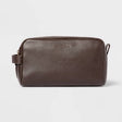 Store your everyday essentials at home or for travel in convenience with the Leather Dopp Kit Handbag from Goodfellow & Co™. This dopp kit handbag features a main compartment with a zipper closure to help keep the contents secure. This handbag is made of faux leather and is easy to store in luggage.