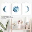 This 3 piece print set depicts the phases of the moon in a pleasant indigo blue. This rich beautiful color is perfect for a boy's nursery - creating a favorable atmosphere for sleep and other activities. White frames suit this set most of all.