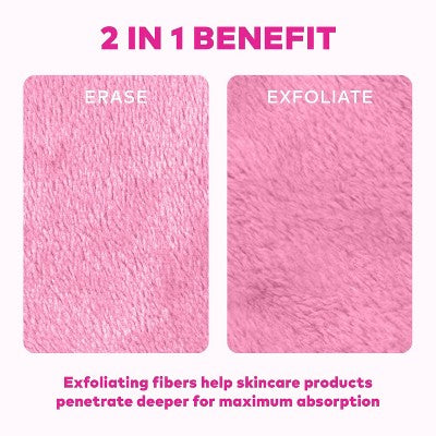Erase all makeup with JUST WATER™ including waterproof + SPF. Our patented, water-activated, cloud-soft fibers gently & easily remove all makeup & sunscreen from pores. 2 in 1 benefit: one side erases makeup & one side exfoliates skin.