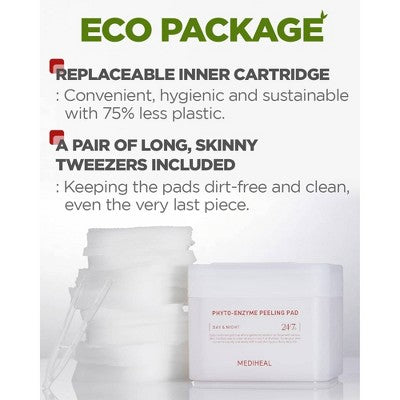 Mediheal’s Phyto-enzyme Peeling Pad exfoliates and resurfaces skin, lifting away dead skin for soft, smooth skin. This non-abrasive treatment gently boosts your skin’s natural exfoliation process to reduce the signs of aging and improve the appearance of pores.