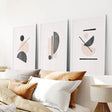 Bring a touch of mid-century modern style to your home with this set of 3 abstract prints. Featuring a unique blend of beige and black hues, these geometrical wall art pieces are sure to make a statement in any room. Made to order for the ultimate home decorating experience.