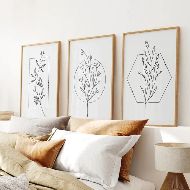 Bring a touch of nature and sophistication to your home with our Minimal Flower Line Art Prints. This set of three, black and white, large art posters are perfect for above bed wall decor or as a unique home gift. Our trendy wall art is a boho-inspired take on botanical art that adds a neutral, esthetic touch to any room. Choose from our variety of popular sizes, or let us create a custom size for you!