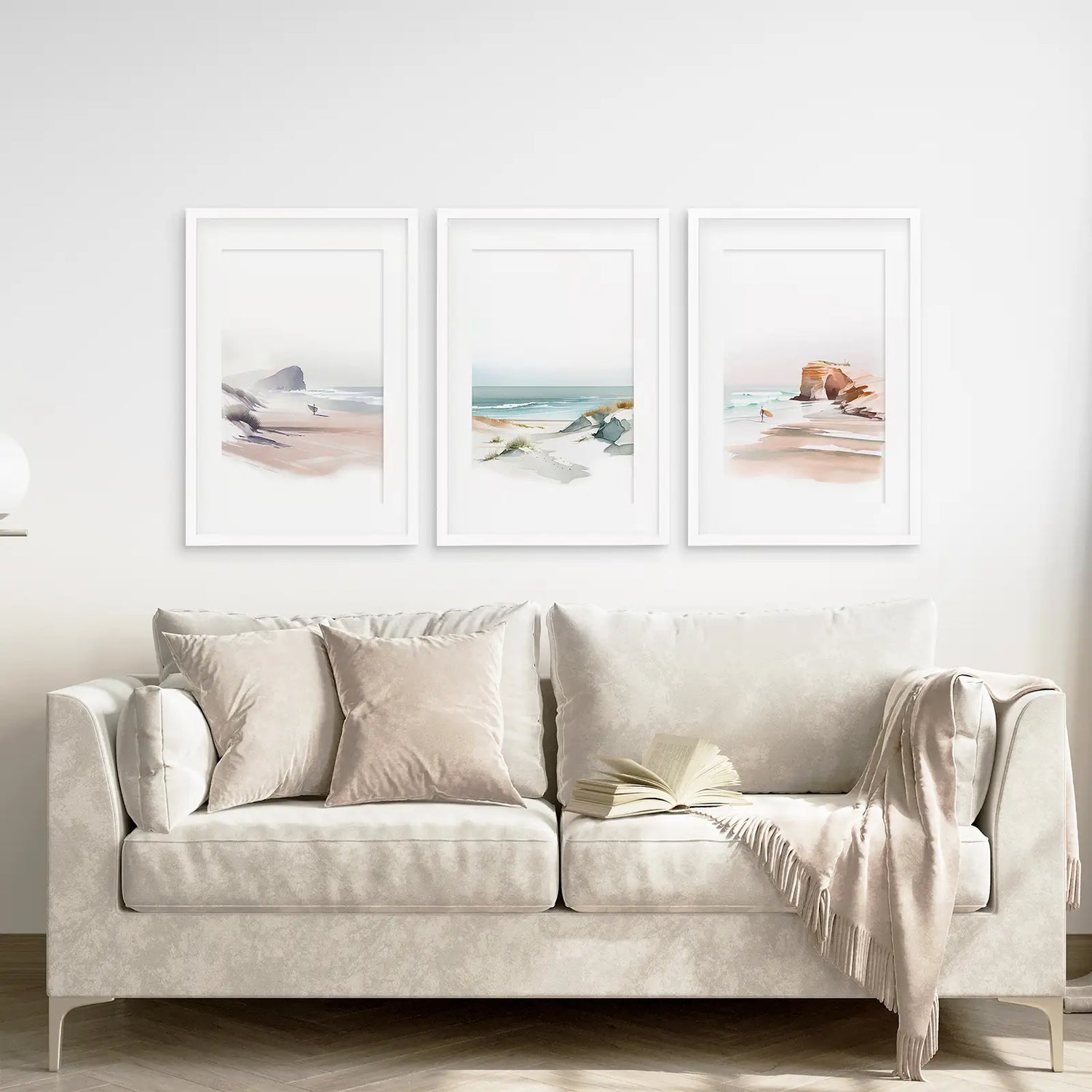 Transform your home with a Three Piece Wall Art Set featuring Shoreline and Ocean Waves prints. Perfect for Lake House Decor and Beach Wall Decor, these Modern Coastal Framed Posters bring a touch of Ocean Landscape beauty to your living space.