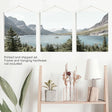 Glacier National Park is located in Montana, USA. This is a photograph of a beautiful lake bordered by a mountain range covered in coniferous trees. This set of 3 prints would be perfect for your room if you are going to decorate a local hotel, or if you have fond memories of the place. Enjoy! :)