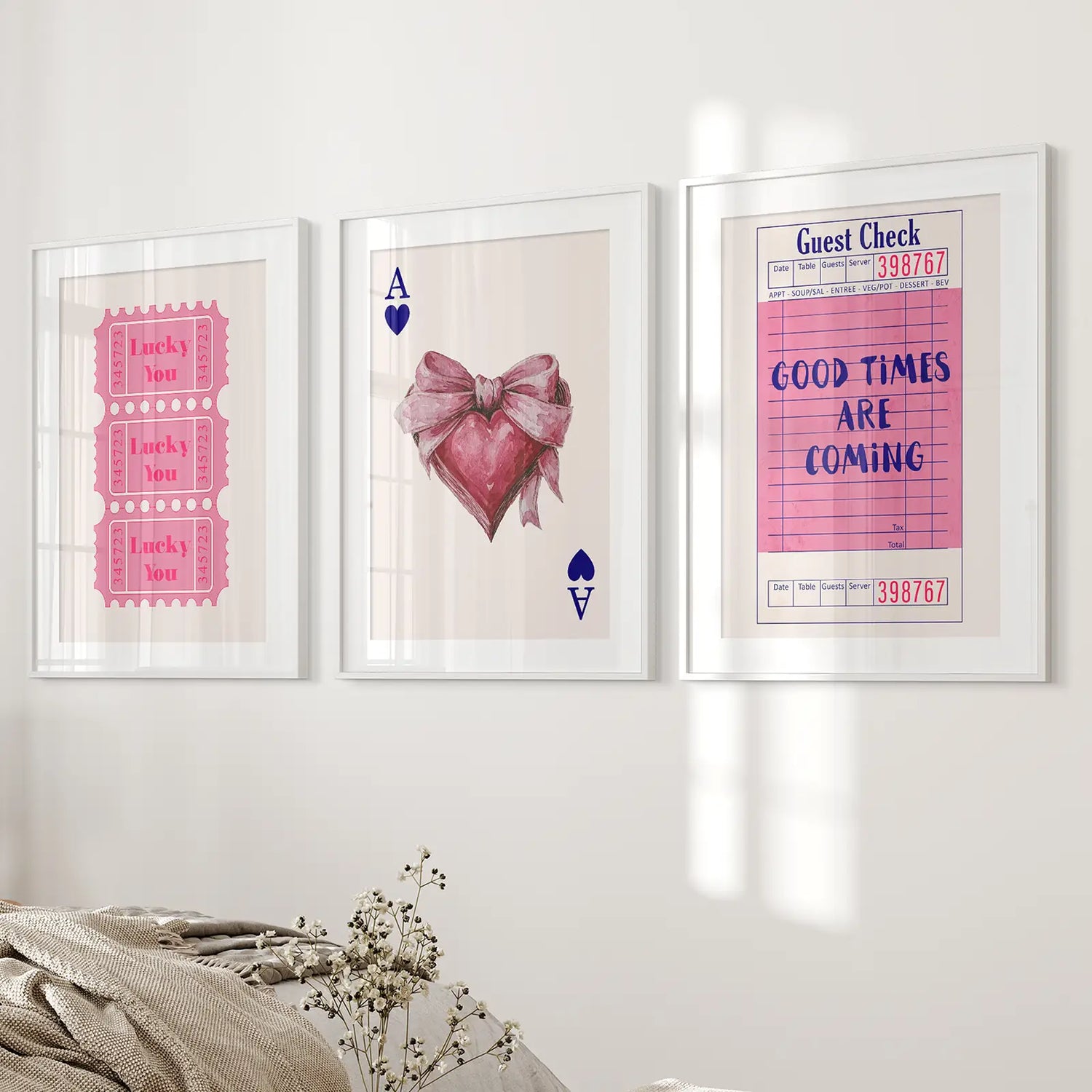 Preppy Pink Girly Poster Set of 3 Wall Art Decor
