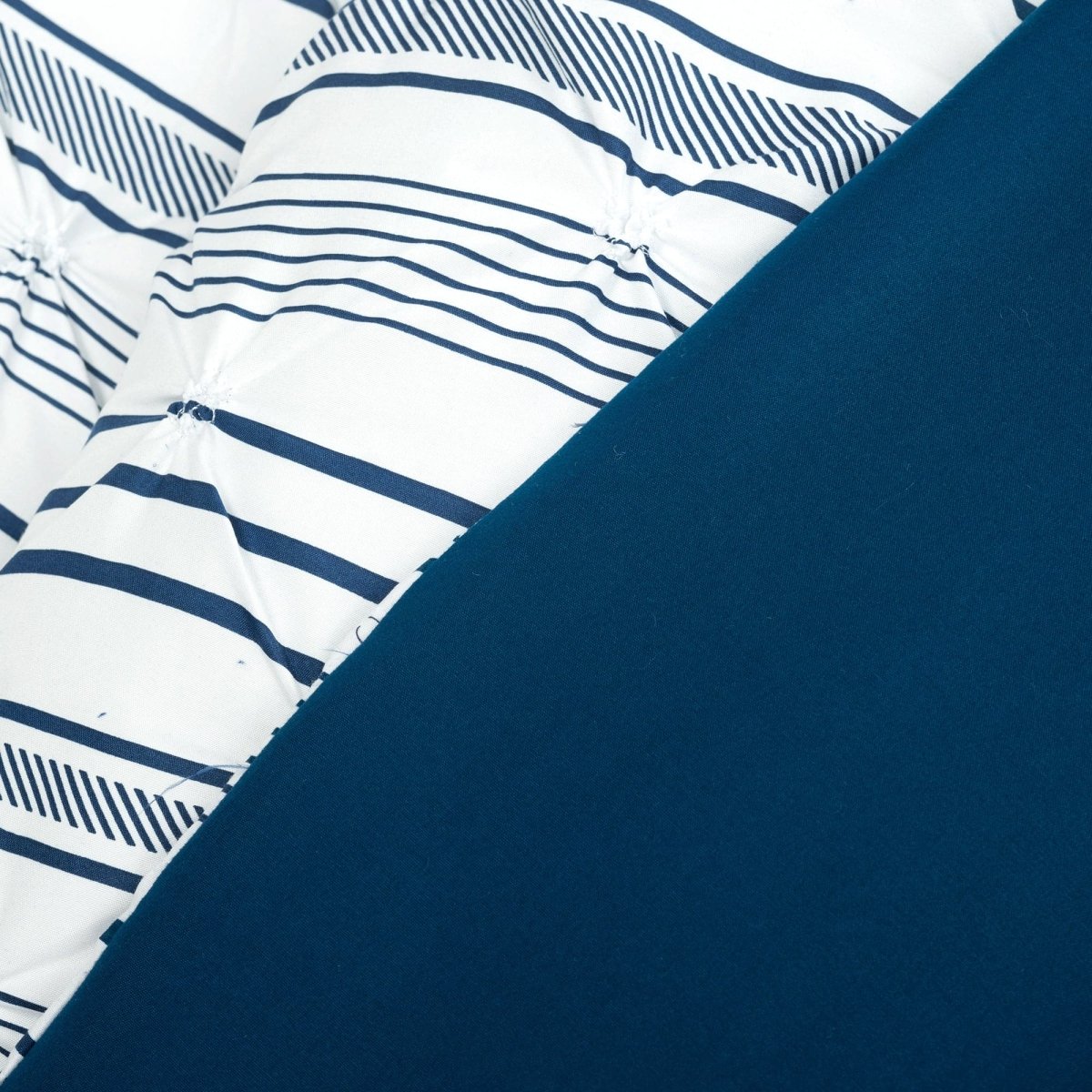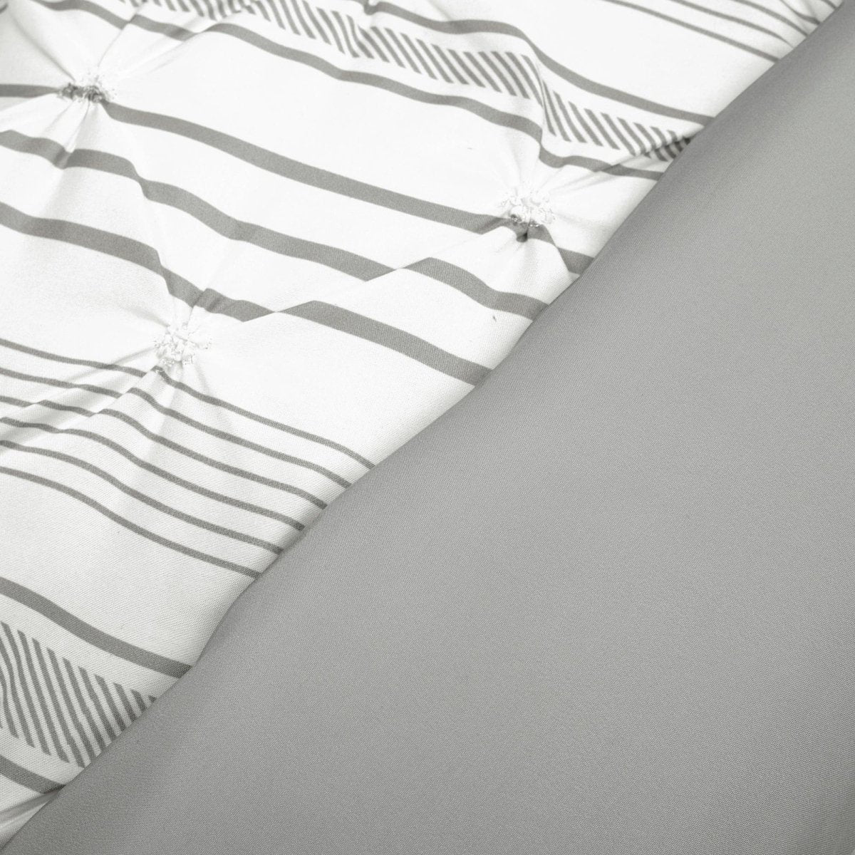 Cozy up your bedroom this season with our textured Ravello Pintuck Stripe 5 Piece Comforter Set. The pintucked pattern is layered with thin and thick stripes that adds charming farmhouse style to your bedroom. The reverse side features a bold solid color that's perfect for adding accessories like throws and decorative pillows.