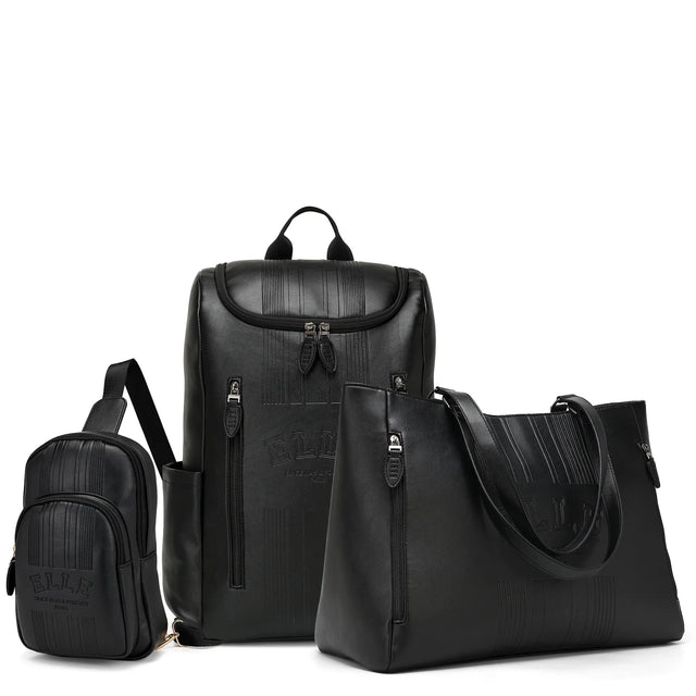 Upgrade your travels with the ELLE Roamer travel set, a stylish and versatile three-piece collection featuring an elegant 24L weekender Bag, a functional 22L backpack, and compact 2.8L crossbody bag. Crafted from premium vegan leather, this thoughtfully-designed set delivers exceptional style, durability, and practicality, perfect for short trips, daily commutes, or weekend adventures.