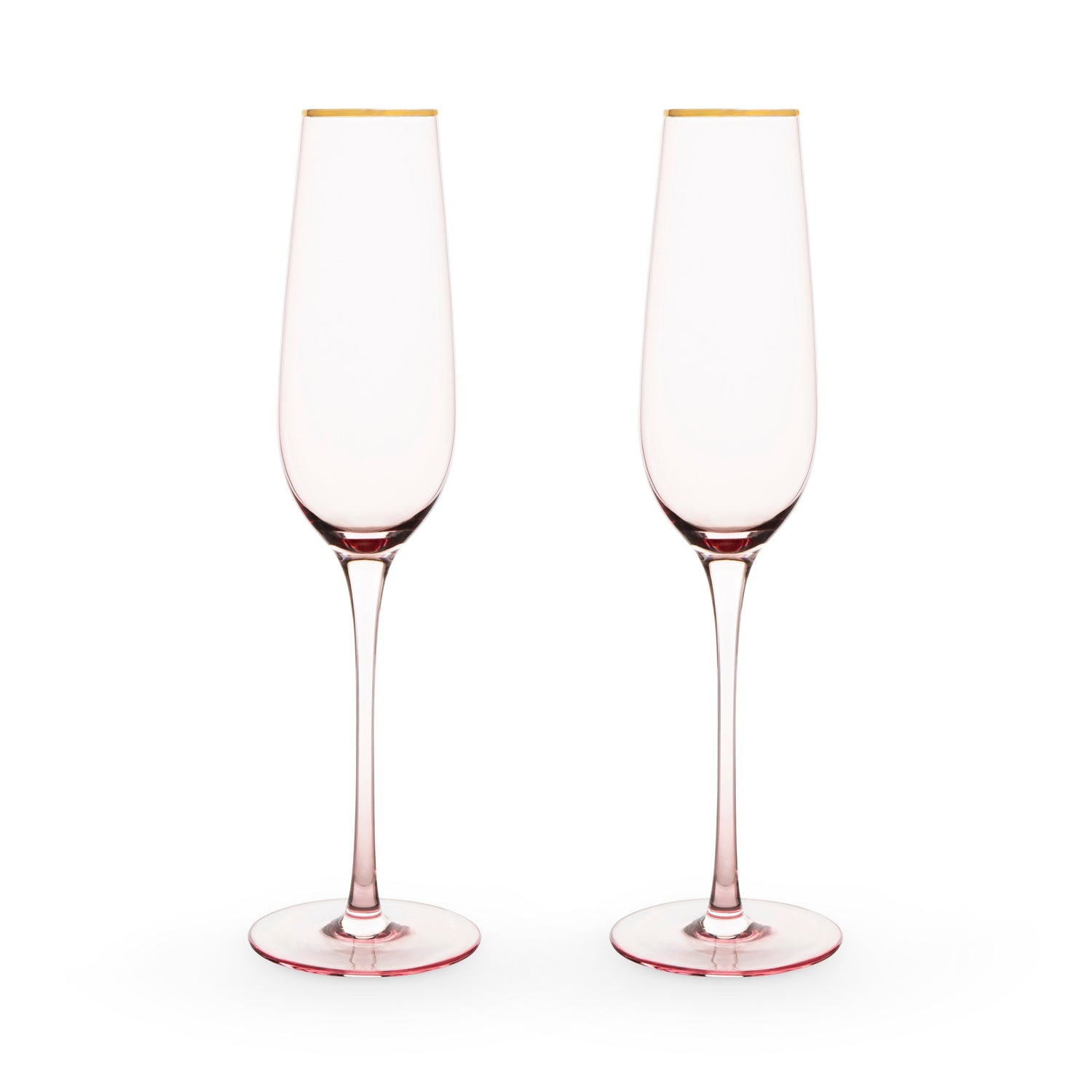 Life looks a lot rosier when you sip from these gold-rimmed glasses. Tinted a delicate pink, these crystal glasses are the perfect vessels for your favorite bottle of bubbly.