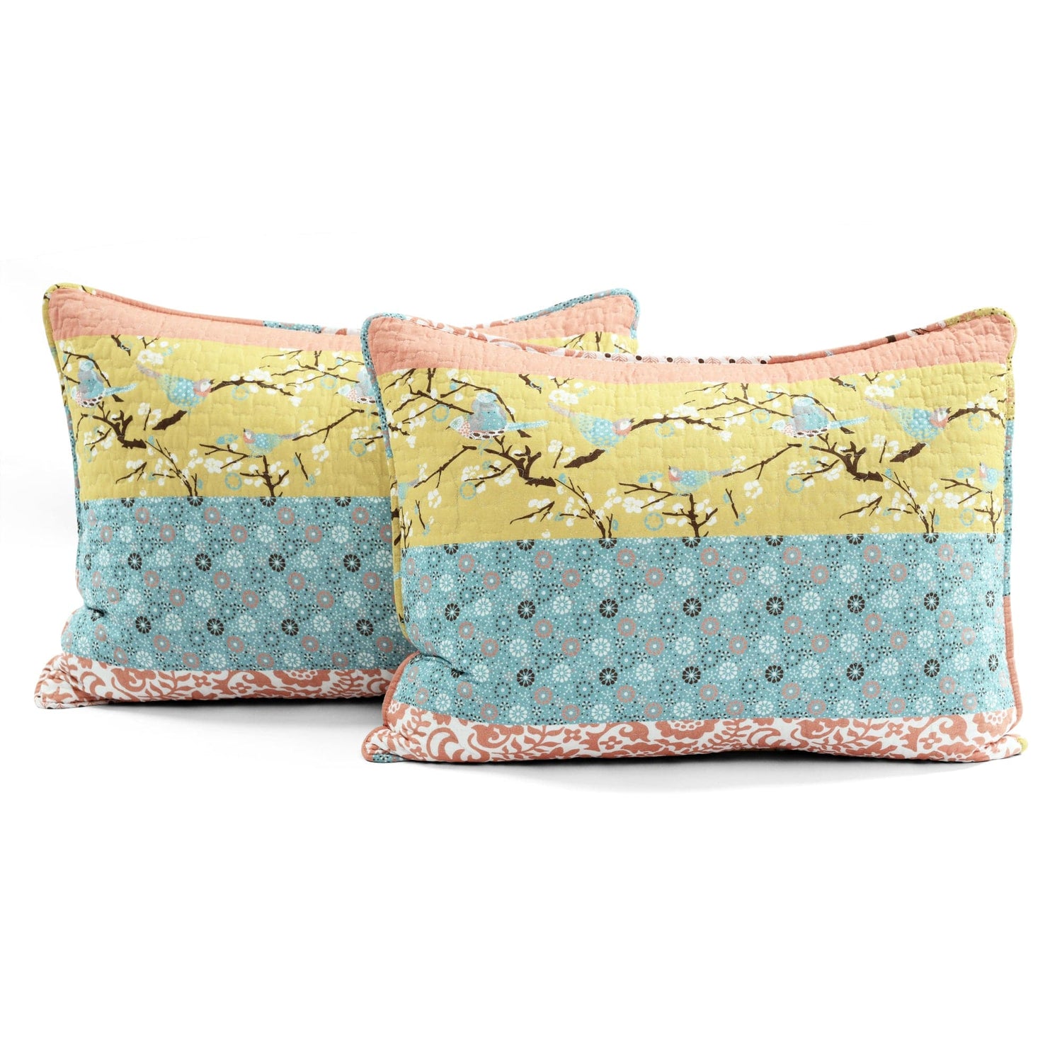 Our Royal Empire 3 Piece Quilt Set includes a soft cotton quilt and two matching pillow shams which complete the look. It is available in six different color options, including tangerine, plum, peacock blue, rustic gray, coral/blue and navy. This quilt set is a great value at under $100.