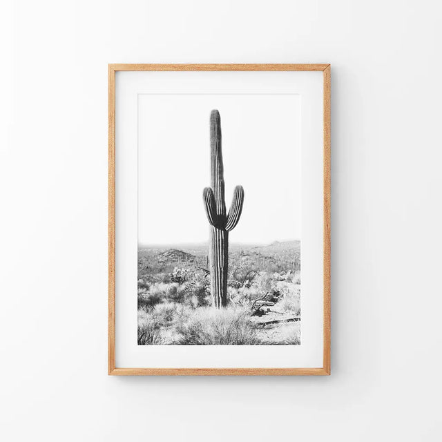 This minimalistic wall decor is black and white and allows you to enjoy beauty of saguaro cactus. Its is a striking plant that can grow up to 12 meters tall in Arizona's desert. Try to hang it in your home in thin wood frames.