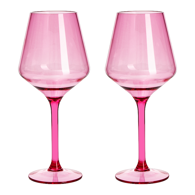 Saint Tropez Wine Glassware. Pink. Unbreakable Acrylic. 9.4"H X 2.4"dia. 15 ounces.