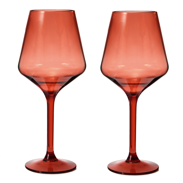 Saint Tropez Wine Glassware. Cranberry. Unbreakable Acrylic. 9.4"H X 2.4"dia. 15 ounces.