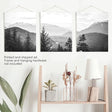 Set of 3 Black White Mountain Forest Prints. Scandi Wall Art
